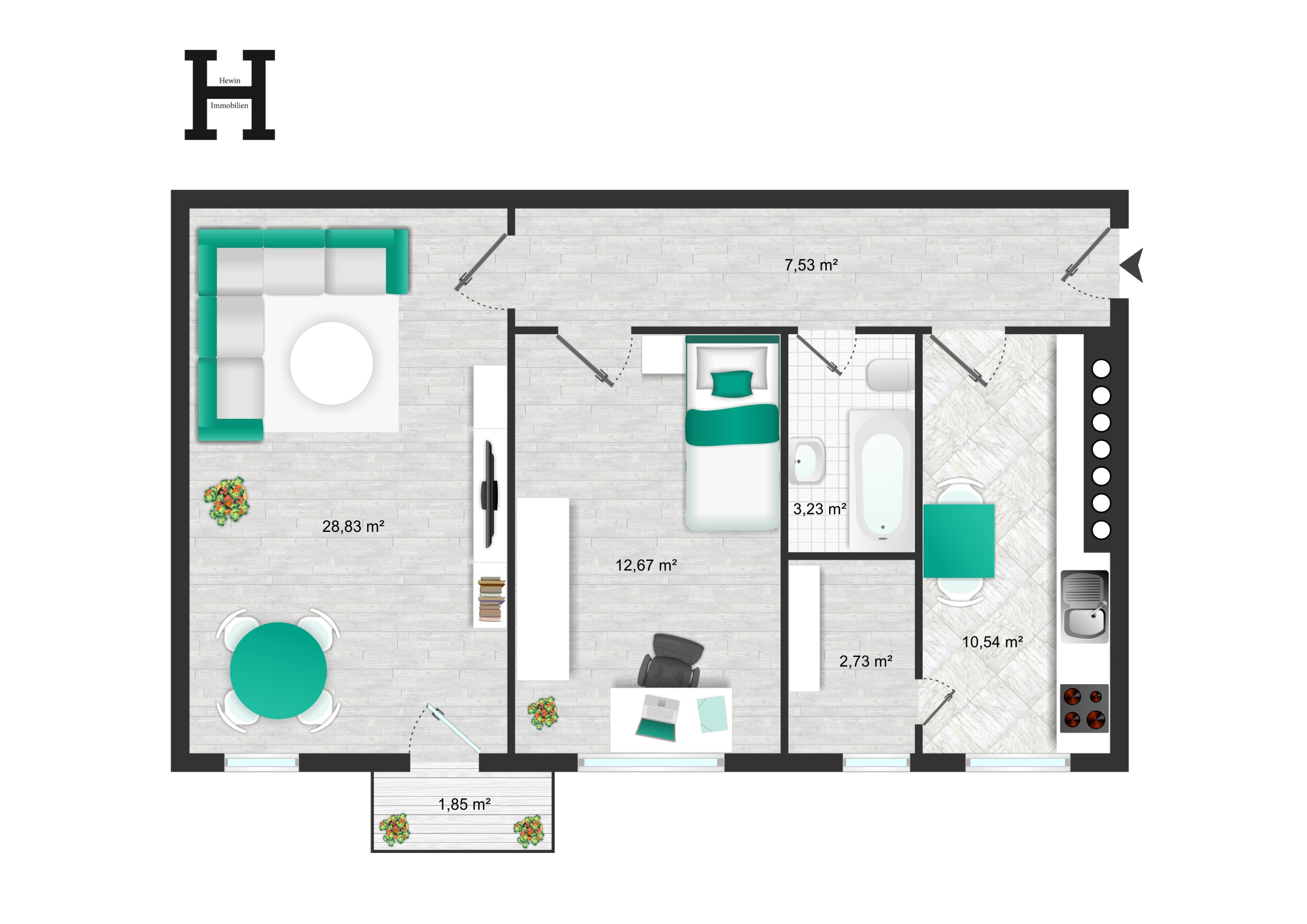 - Wohnfläche ca. 59 m²