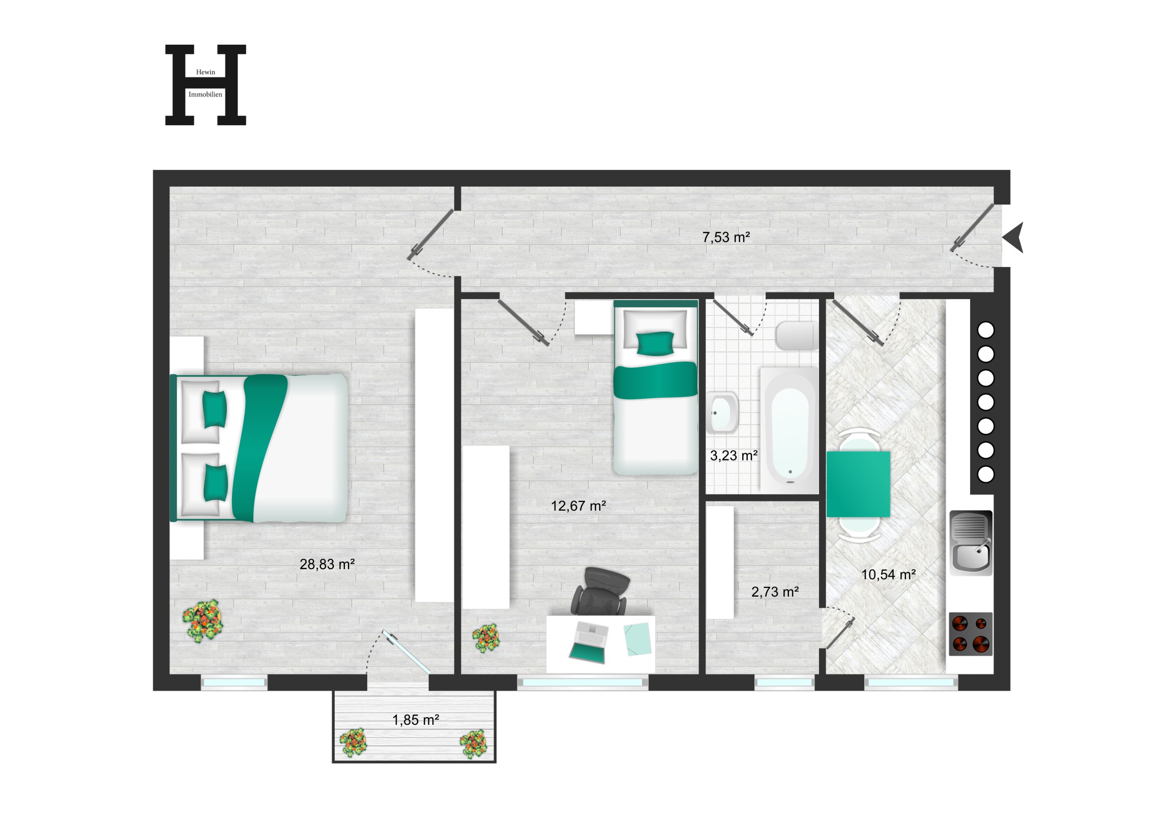 - Wohnfläche ca. 59 m²