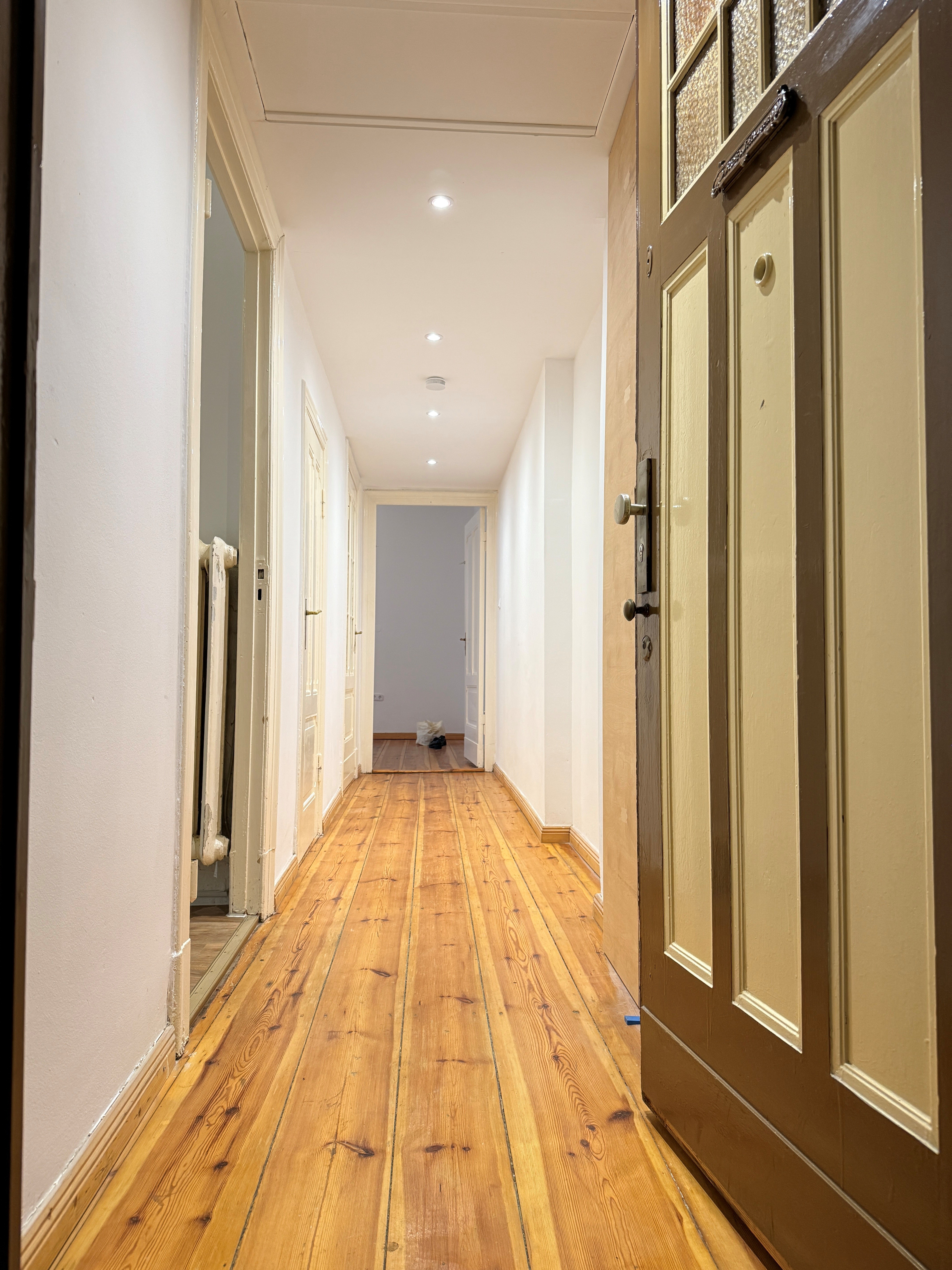 Ein langer, die Räume verbindender Flur erschließt die Wohnung. Besonders hervorzuheben ist die großzügige Küche, die durch einen zusätzlichen, großen Abstellraum praktischen Stauraum bietet. Zusammen mit dem modernen Duschbad wurde die Küche bereits renoviert, sodass hier bereits modernen Komforts vorhanden sind. Die gesamte Wohnung wurde zudem frisch gestrichen und präsentiert sich in einem sauberen und bezugsfertigen Zustand.