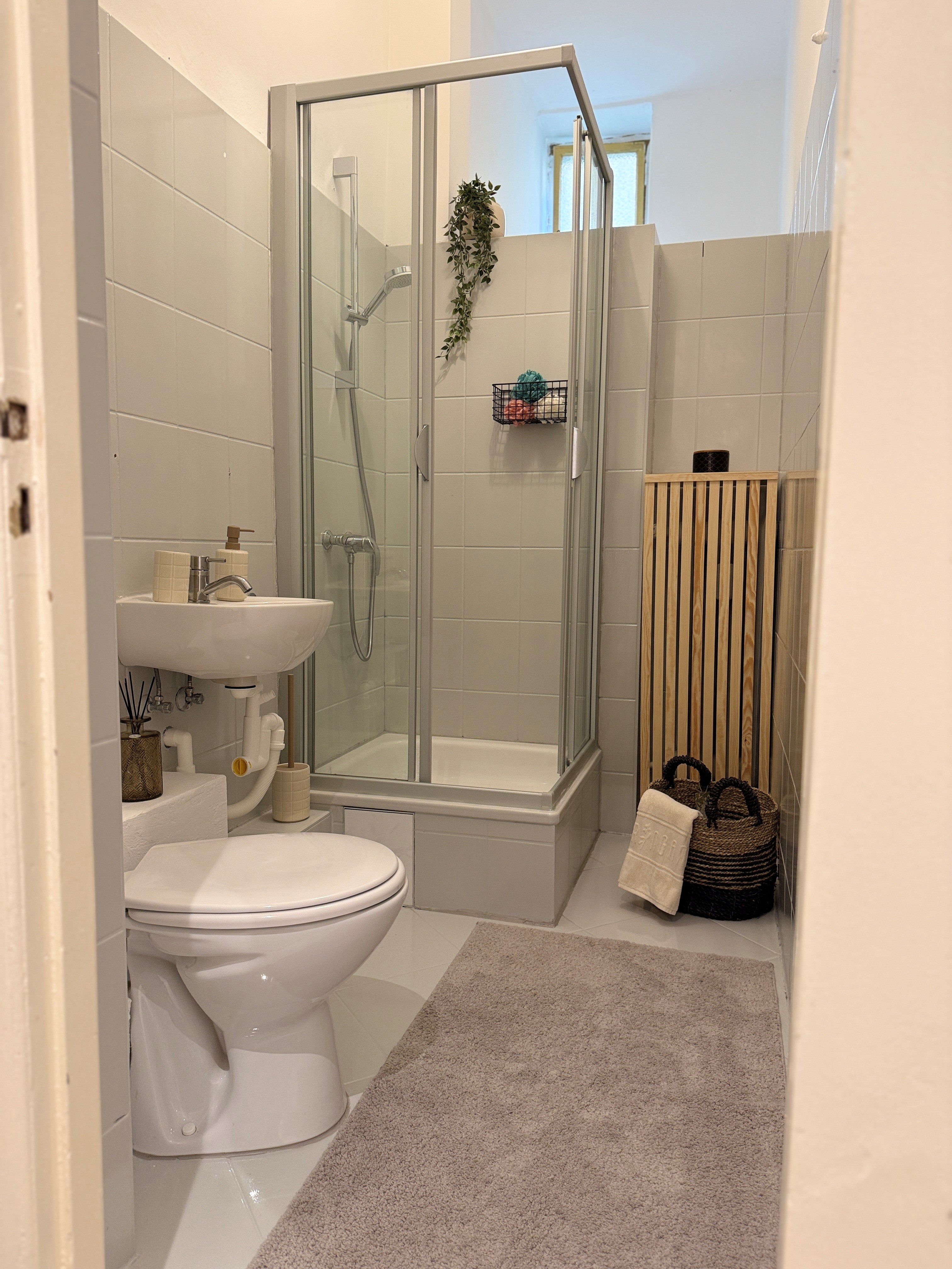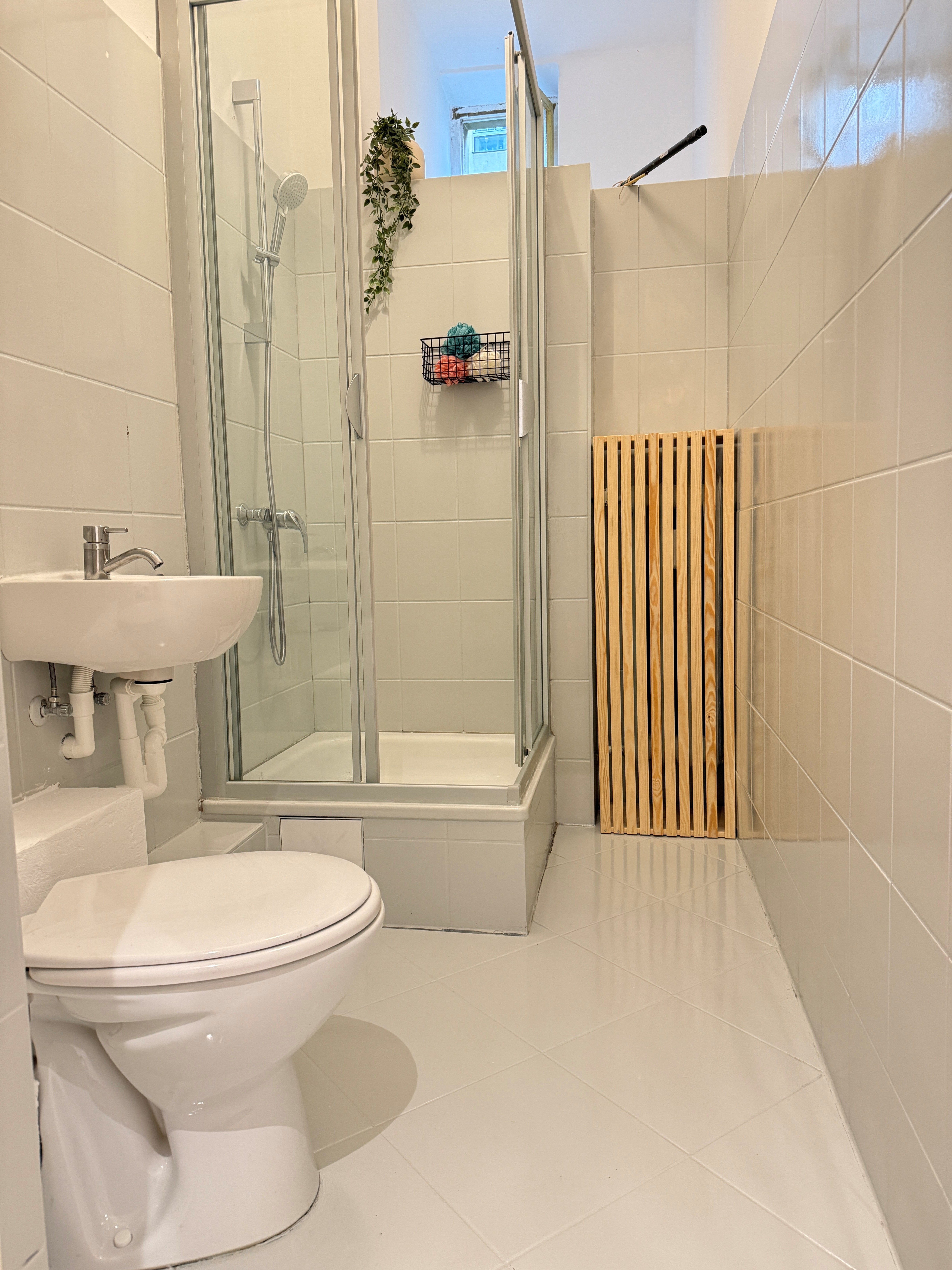 - Ausstattung des Bades Dusche Fenster