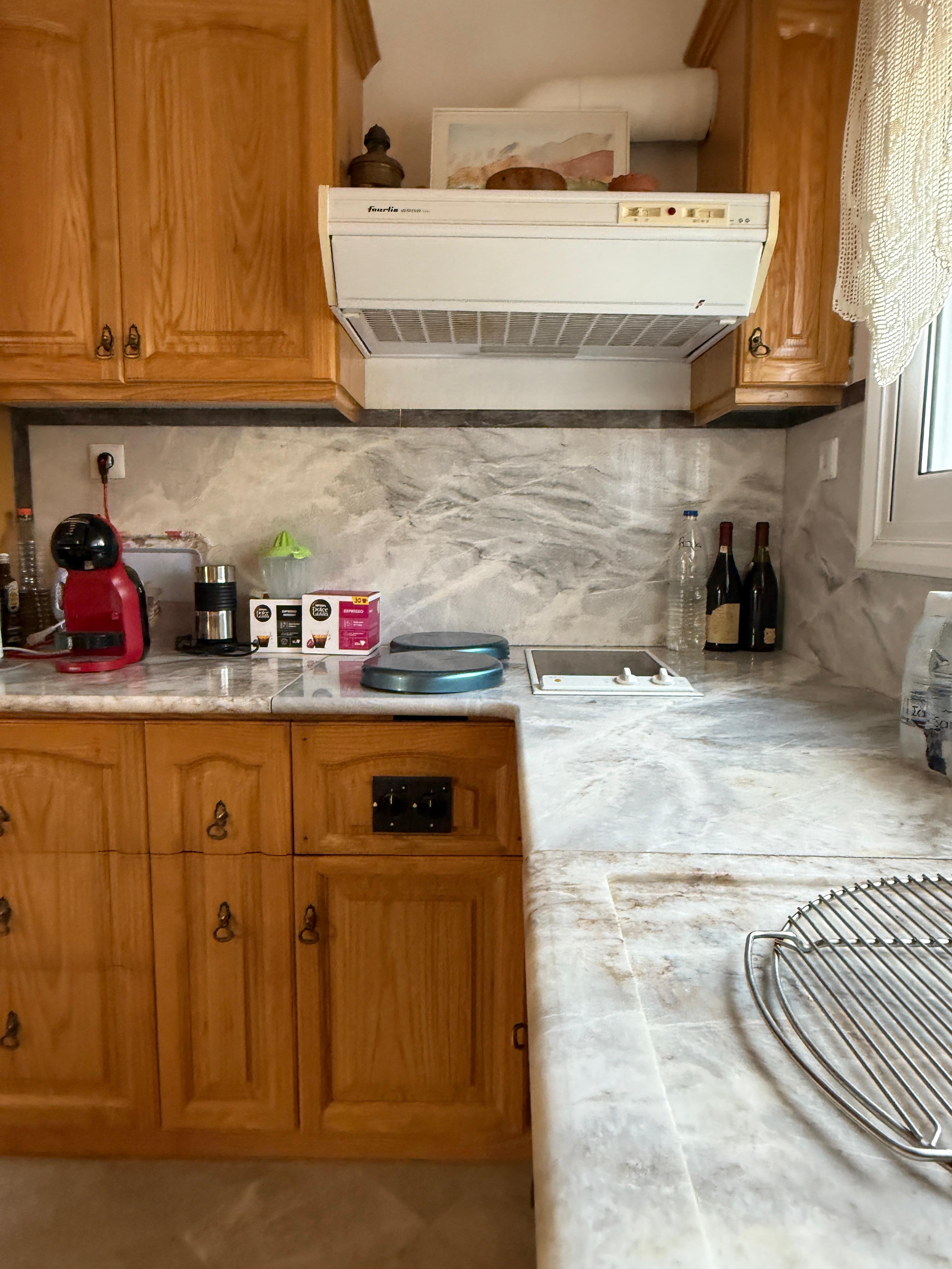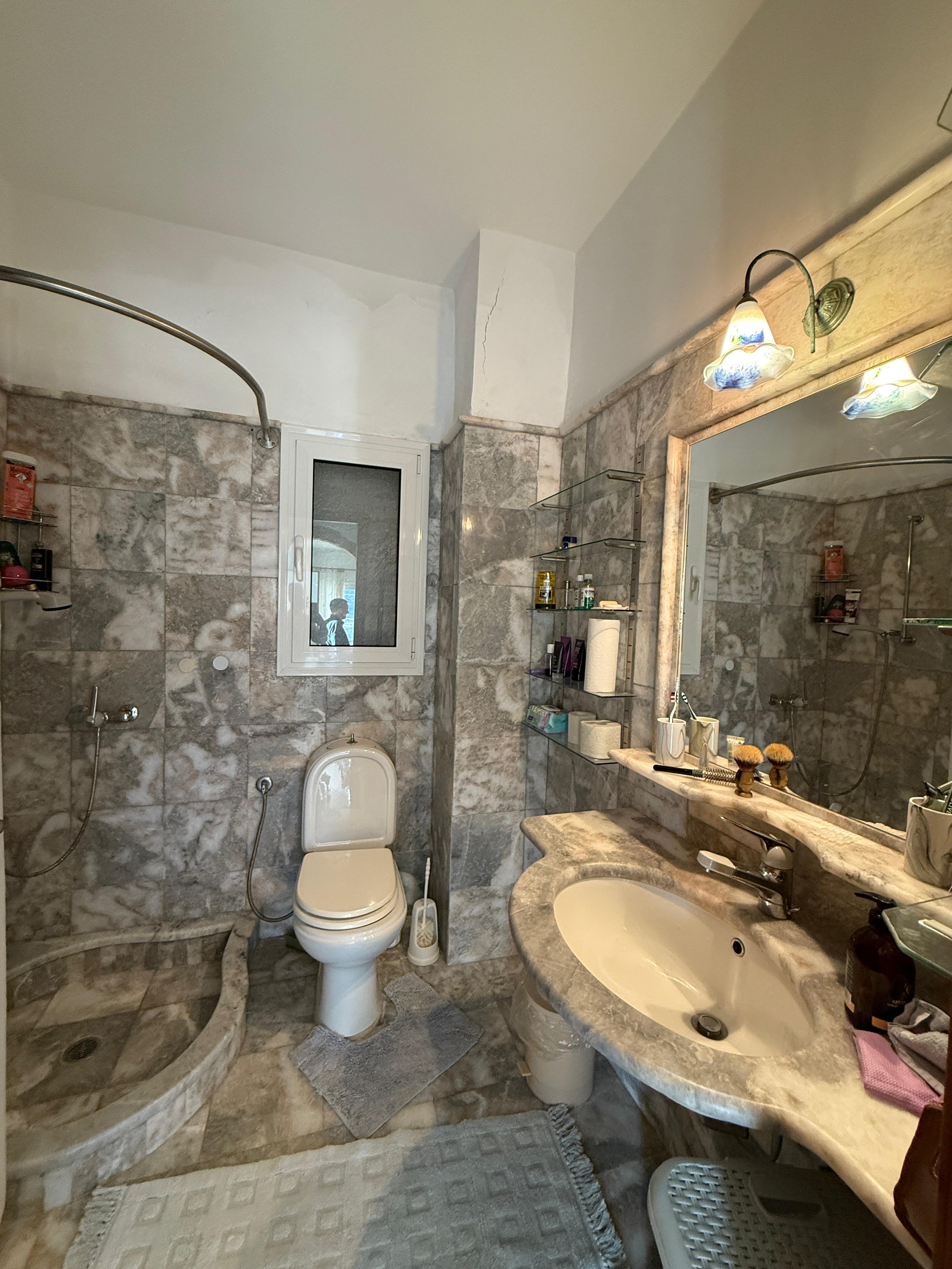 Ein schönes vollmöbliertes Haus bestehend aus zwei getrennten, vollwertigen Wohneinheiten, ideal für Familien, zur Vermietung oder für Gäste. Jede der beiden Etagen hat, ein helles, großzügiges Wohnzimmer mit gemütlichem Kamin, eine hochwertige Einbauküche mit edlen Marmor-Arbeitsplatten, Gas und Ceranfeld– zum Kochen und Genießen! Zwei separate Schlafzimmer für ungetrübte Privatsphäre. Ein elegantes Marmor-Duschbad mit Fenster für eine lichtdurchflutete Atmosphäre.