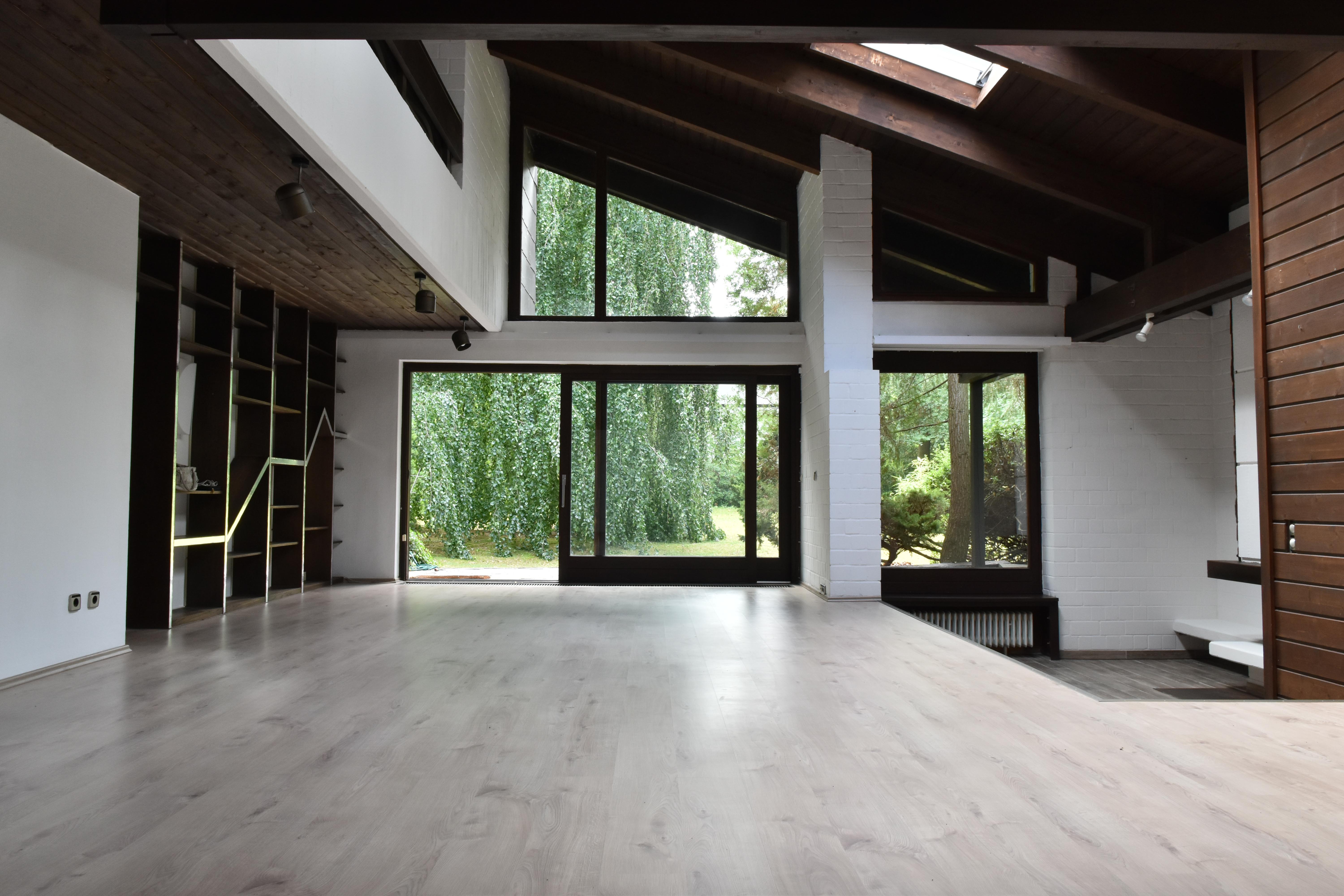 Das Anwesen beeindruckt bereits heute mit einem charakterstarken Architektenhaus, das durch seine klaren Linien, variable Raumhöhen bis sieben Meter und großzügige Glasfronten eine inspirierende Atmosphäre schafft. Zugleich bietet das weitläufige Grundstück ein enormes Entwicklungspotenzial – sei es für den Neubau zweier moderner Luxusvillen oder für die stilvolle Erweiterung des bestehenden Hauses.