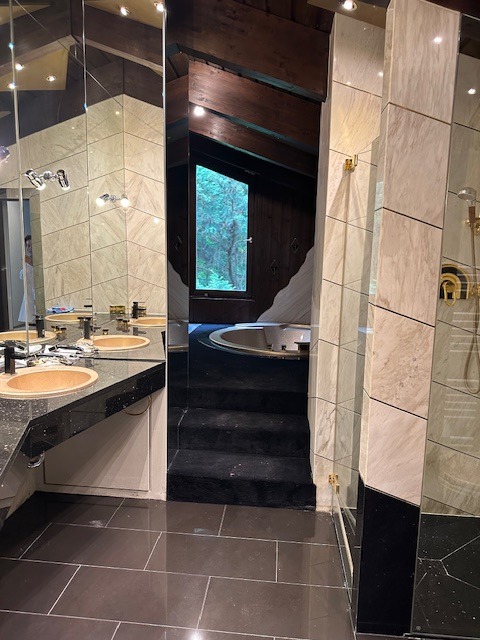 Das gesamte Gebäude ist mit modernen Annehmlichkeiten ausgestattet, darunter eine Alarm- und Klimaanlage. Jede Ebene verfügt über einen offenen Kamin, der zusätzlich zur behaglichen Atmosphäre beiträgt.