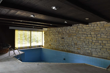 Im Gartengeschoss findet man einen Wellnessbereich mit Schwimmbad, Sauna, Duschbad, sowie Wirtschafts- und Technikräume. Der Zugang zur Doppelgarage mit zwei Stellplätzen und einem Carport ist ebenfalls auf dieser Ebene vorhanden.