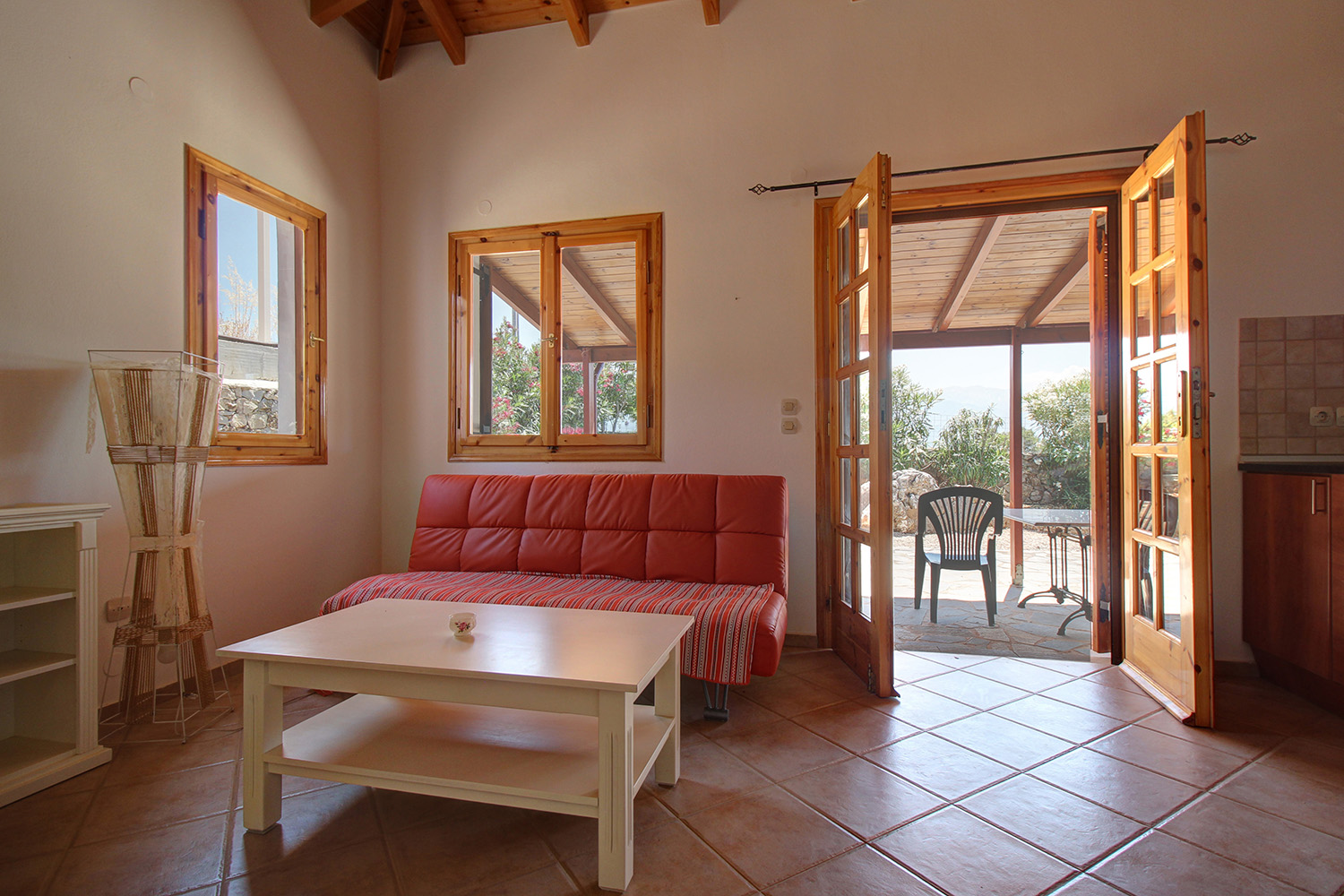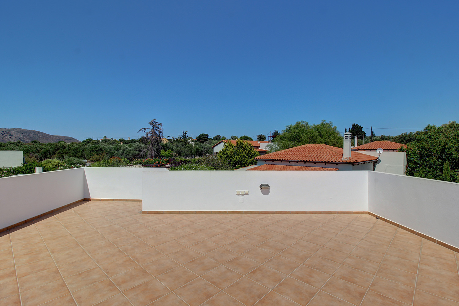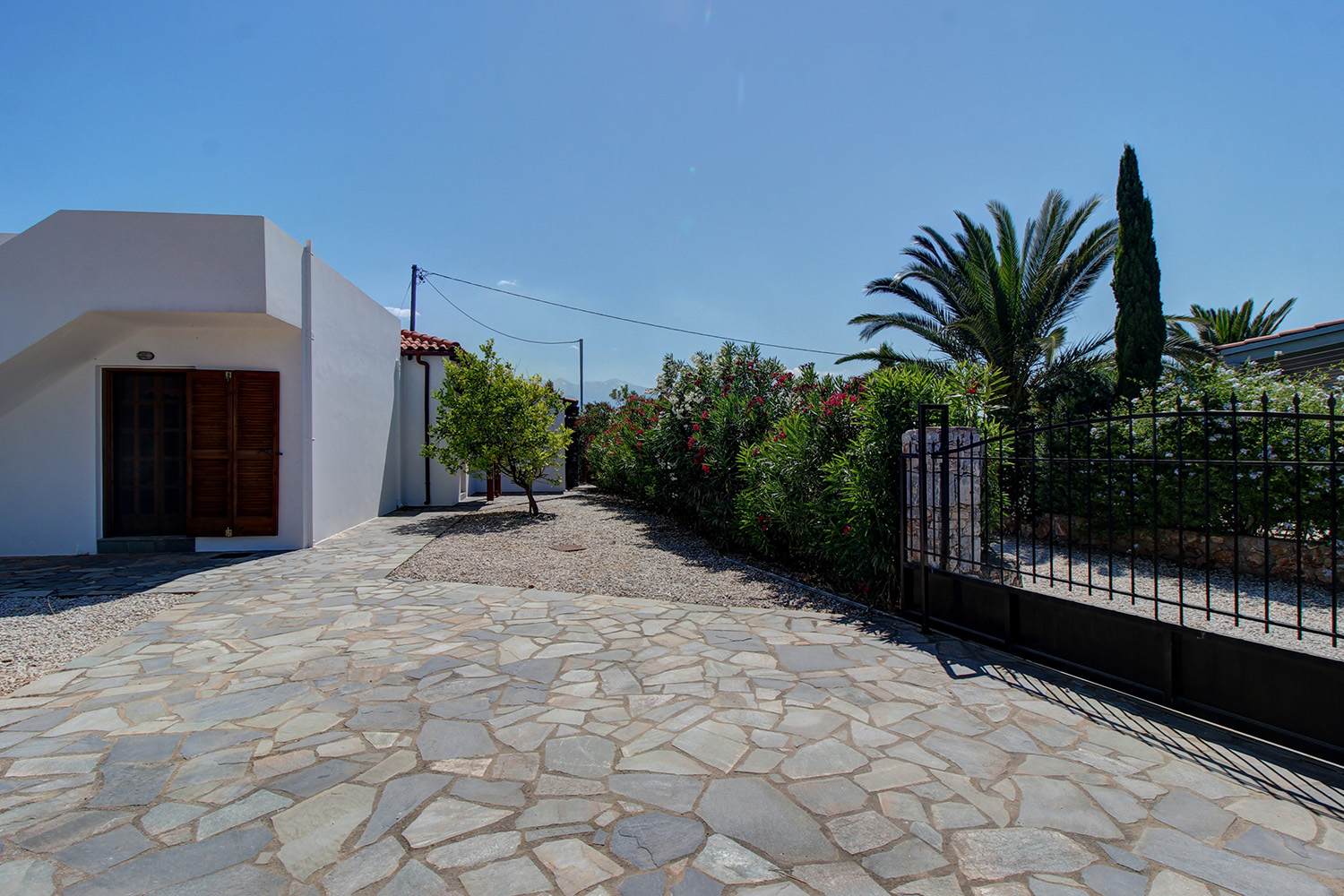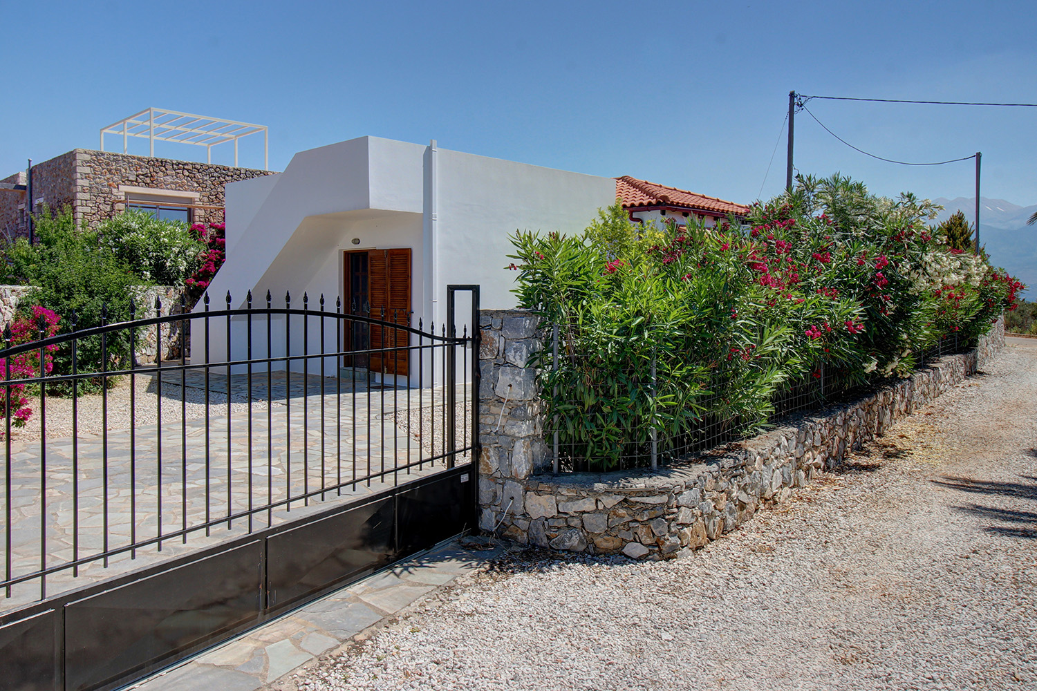 Das Anwesen liegt in einem kleinen Dorf in der Gemeinde Vamos in Apokoronas, östlich von Chania. Das Dorf ist umgeben von grünen Hügeln und besteht hauptsächlich aus luxuriösen Anwesen. Das Haus besteht aus einem Erdgeschoss, hat einen grossen Garten und bietet tolle Aussicht über die weißen Berge. Das Grundstück ist durch eine kleine Mauer abgegrenzt, welche mit Blumen und Büschen bewachsen ist.
