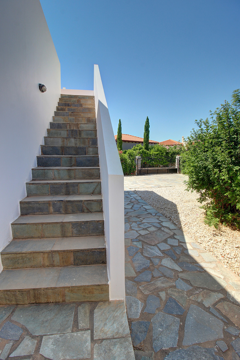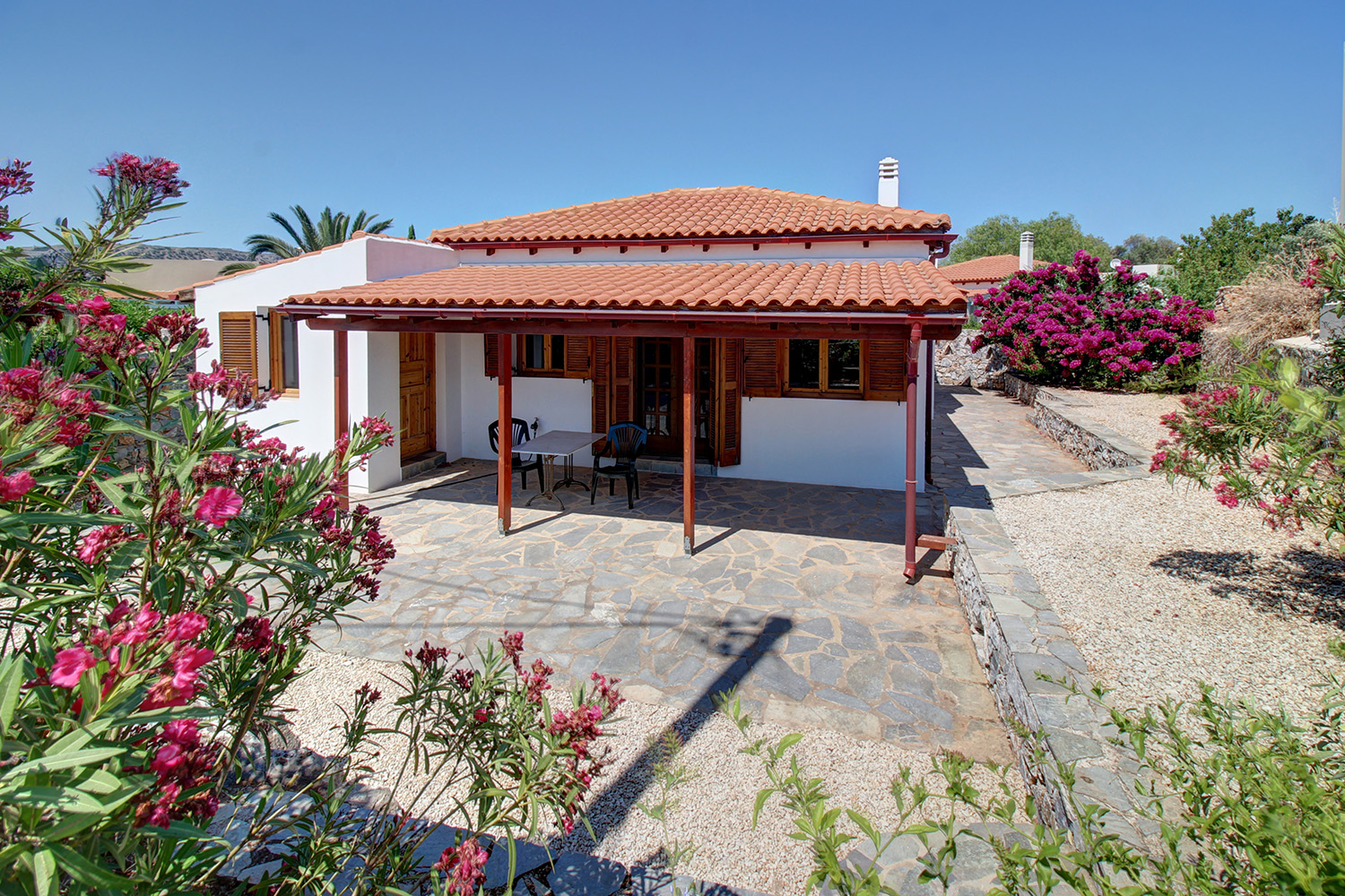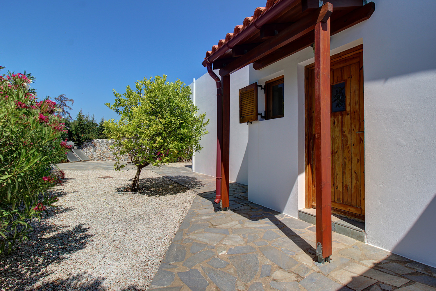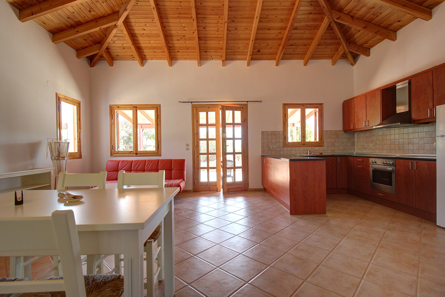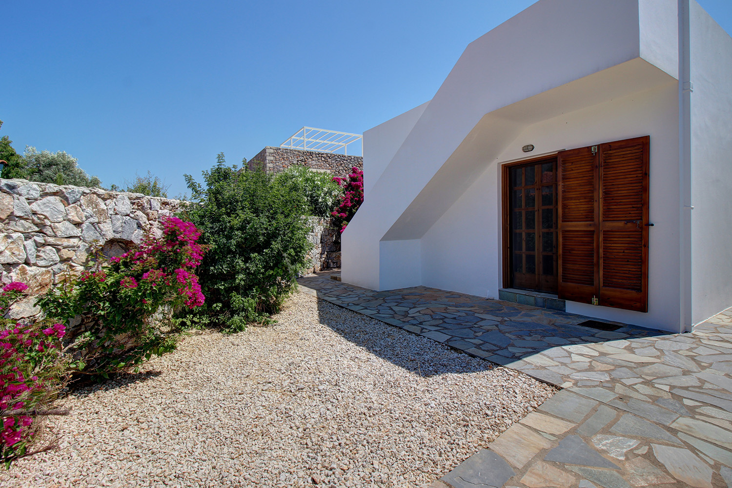 Das Anwesen liegt in einem kleinen Dorf in der Gemeinde Vamos in Apokoronas, östlich von Chania. Das Dorf ist umgeben von grünen Hügeln und besteht hauptsächlich aus luxuriösen Anwesen. Das Haus besteht aus einem Erdgeschoss, hat einen grossen Garten und bietet tolle Aussicht über die weißen Berge. Das Grundstück ist durch eine kleine Mauer abgegrenzt, welche mit Blumen und Büschen bewachsen ist.