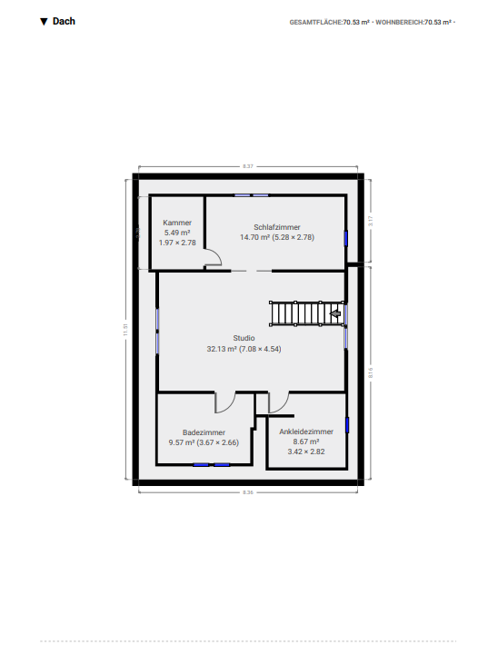 – Walmdach mit Satteldachgauben (2 Stück), 2004 umfassend gedämmt